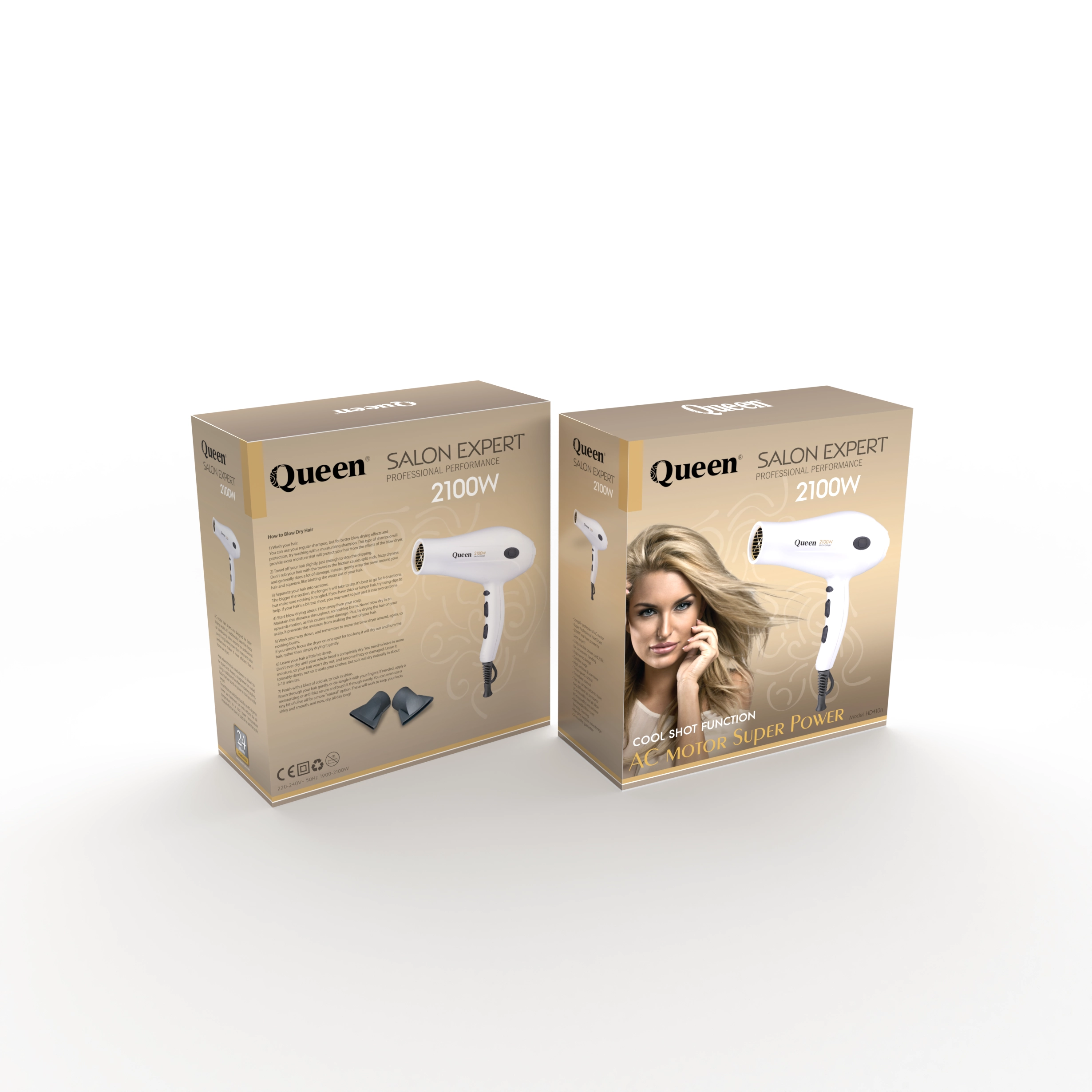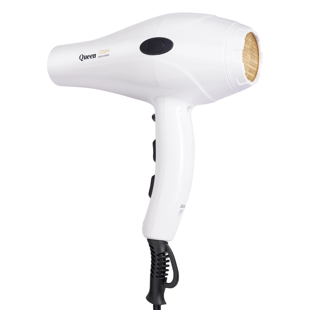 اگر برای مصارف خانگی و حتی تا حدی حرفه ای به یک سشوار با کیفیت مناسب و در عین حال زیبا نیاز دارید سشوار کویین مدل HD410n یک انتخاب مناسب برای شماست. این سشوار با ظاهری زیبا و جذاب، قدرت پرتاب باد خوب و طراحی اگونومیک می تواند به شما در خشک کردن موهایتان در اسرع وقت کمک کند. سشوار کویین مدل HD410n از سه حالت کنترل حرارت، دو سرعت پرتاب باد، دکمه کول شات یا باد سرد، سیم دو نیم متری، دو سری متمرکز کننده هوا، فیلتر هوای جدا شونده و حلقه آویز سیم بهره می برد. این ویژگی ها استفاده از آن را برای هر مصرف خانگی و یا حرفه ای آسان ساخته است. همچنین ابعاد مناسب این سشوار باعث می شود تا بتوانید براحتی آن را در سفر همراه خود داشته باشید.