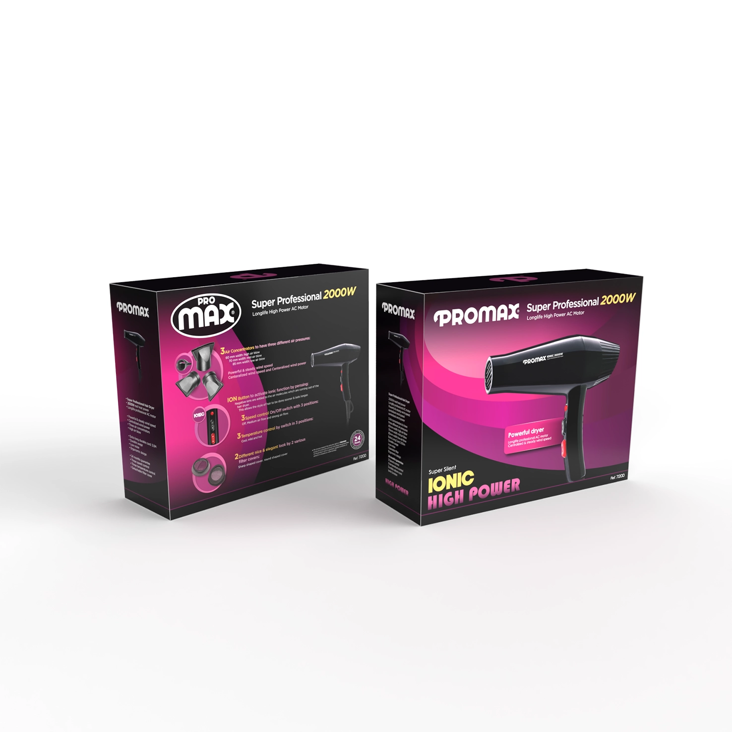 سشوارهای پرومکس یکی از محبوبترین و پرفروشترین محصولات این برند هستند. این سشوارها با موتورهای قدرتمند AC و توان بالا (معمولا 1800 تا 2200 وات)، جریان هوای گرم و قوی را برای خشک کردن سریع موها تولید میکنند. علاوه بر این، دارای دو حالت گرم و سرد برای تنظیم دمای مطلوب و امکان استایل دادن راحت موها هستند.