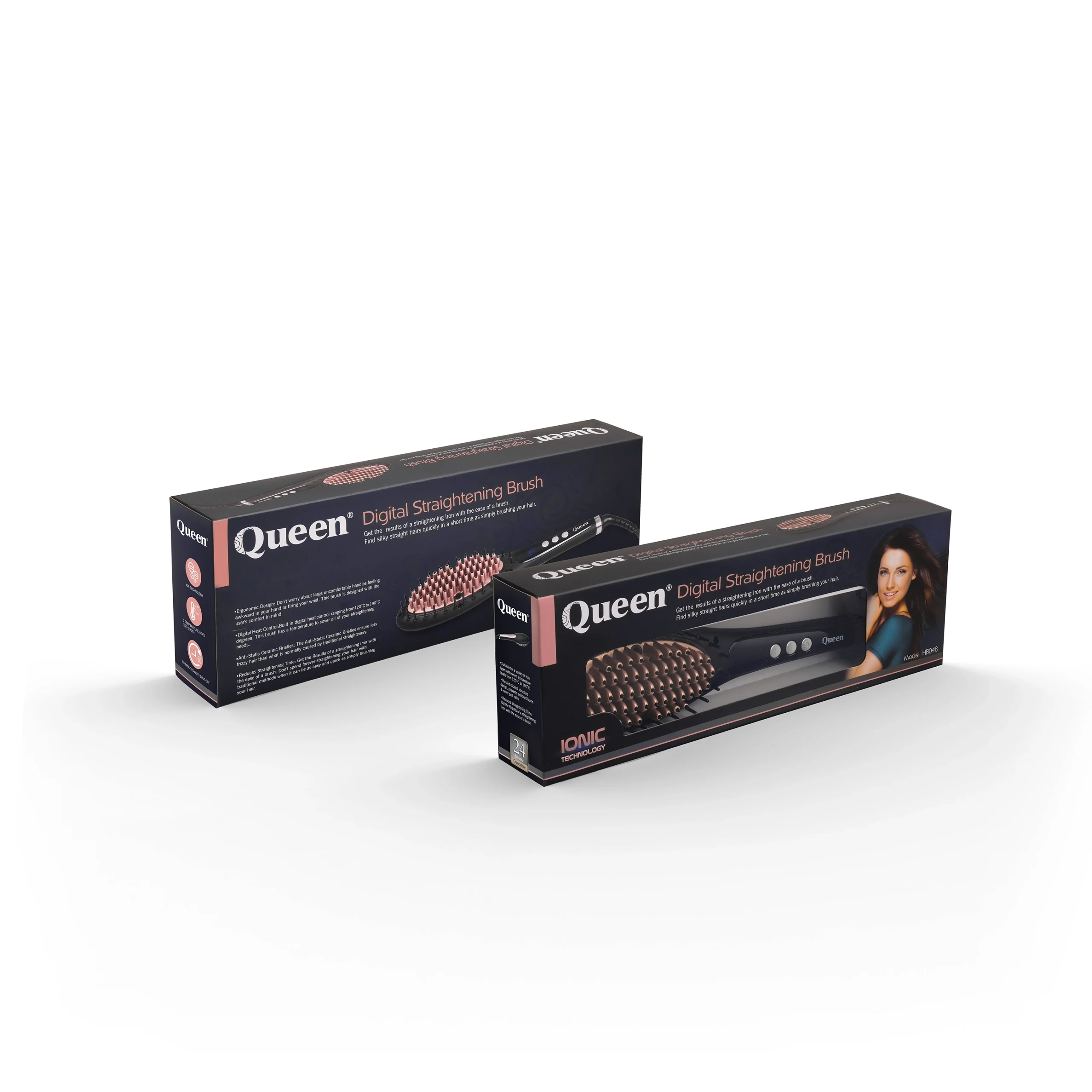 مزیت برس های حرارتی نسبت به دیگر صاف کننده های مو، عملکرد راحت تر و سریع تر آن هاست. برس حرارتی سرامیک کویین مدل HB048 با تکنولوژی منحصر به فرد و طراحی زیبا برای صاف کردن موهای فر و مجعد طراحی شده است. این برس حرارتی دارای صفحه فلزی با روکش سرامیک است که کمترین آسیب را به مو وارد می کند. ویژگی خاص این برس قابلیت تولید یون منفی است که با خنثی کردن الکتریسیته ساکن مو، حالت دادن آن را راحت تر کرده است. بر روی دسته این برس سه دکمه تعیین شده که برای خاموش/روشن کردن و تنظیم درجه حرارت دستگاه کاربرد دارد. حرارت برس حرارتی سرامیک کویین مدل HB048 را می توانید بین 120 تا 190 درجه سانتی گراد تنظیم کنید. برس حرارتی مدل HB048 قدرتی بین 60 تا 63 وات دارد. این دستگاه دارای صفحه نمایش LCD نیز می باشد که درجه حرارت آن را نمایش می دهد. همچنین یکی دیگر از قابلیت های این دستگاه محافظ خاموش شدن خودکار است که برای جلوگیری از آسیب به دستگاه، آن را پس از یک ساعت به صورت اتوماتیک خاموش می کند. سیمی که برای این برس حرارتی تعبیه شده 2.5 متر طول دارد و با قابلیت چرخش 360 درجه به شما آزادی عمل بیشتری می دهد.