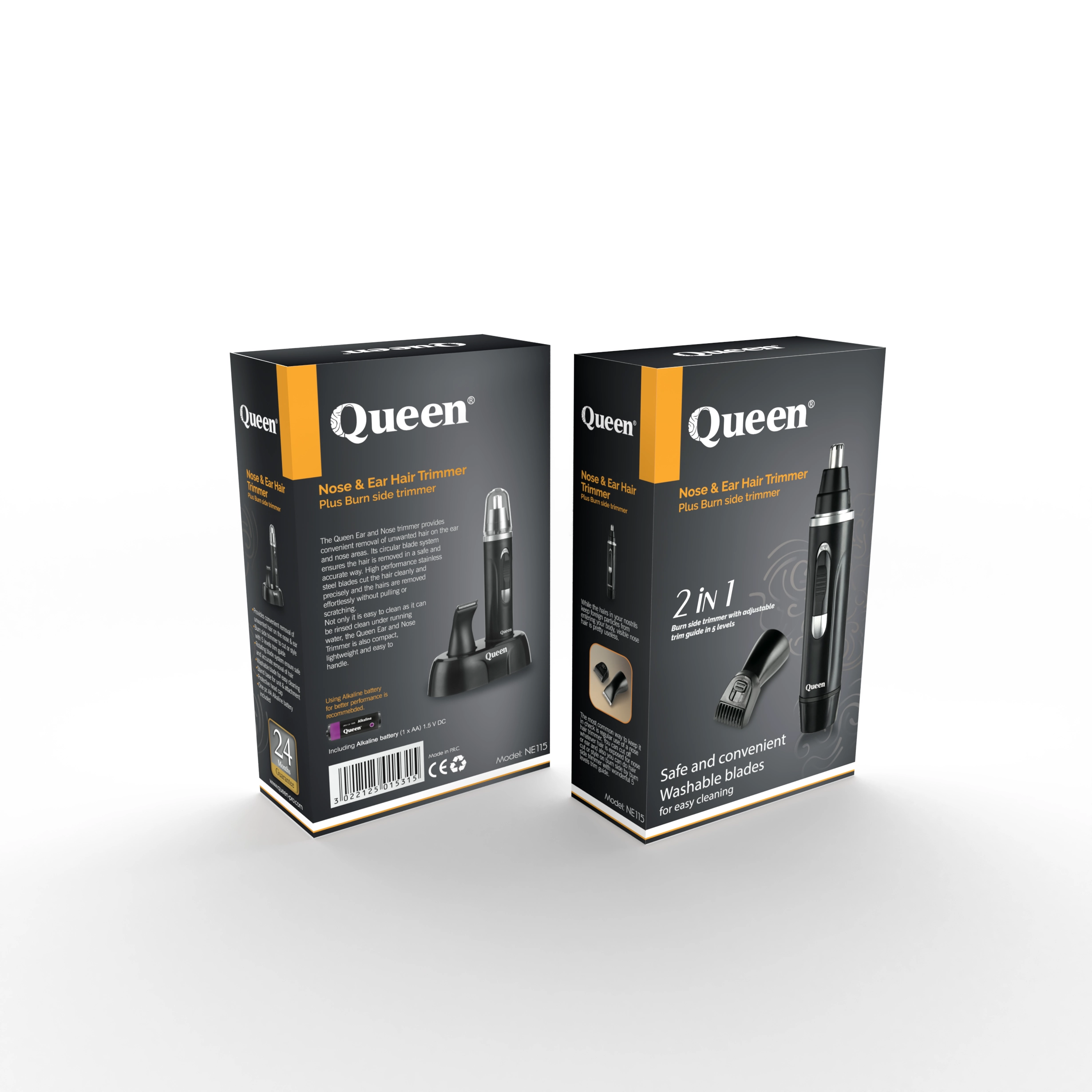 موزن گوش، بینی و ابرو «کوئین» (Queen) مدل «NE-115» با تیغهی استیل ضدزنگ و یک عدد سری خط زن , قابل شست و شو، برای آقایانی که موهای گوش و بینی بلندی دارند ایده آل است. در طراحی بدنهی این دستگاه اصول ارگونومیک رعایت شدهاند و ازاینرو استفاده از آن بسیار آسان است. بدنه در این مدل به صورتی تعبیه شده که از لیز خوردن موزن در دست جلوگیری میکند. این مسئله اهمیت زیادی دارد؛ چون لیزخوردن موزن ممکن است به آسیبدیدگی منجر شود. البته تیغههای مدل NE-115 طوری طراحی شدهاند که از گازگرفتن و ایجاد خراش و برش جلوگیری میکنند. سری موزنی که برای گوش و بینی استفاده میشود، حتما باید قابلیت شستوشو داشته باشد و طراحان هم این مسئله را مد نظر قرار دادهاند. شما میتوانید سری دستگاه را با خیال راحت زیر شیر آب بگیرید و بشویید؛ اما به خاطر داشته باشید که بدنهی دستگاه ضد آب نیست و بهتر است از خیس شدن آن جلوگیری شود. در پایان اینکه موزن گوش و بینی کوئین مدل NE-115 توسط باتری قلمی تغذیه میشود و یک درپوش محافظ هم دارد.