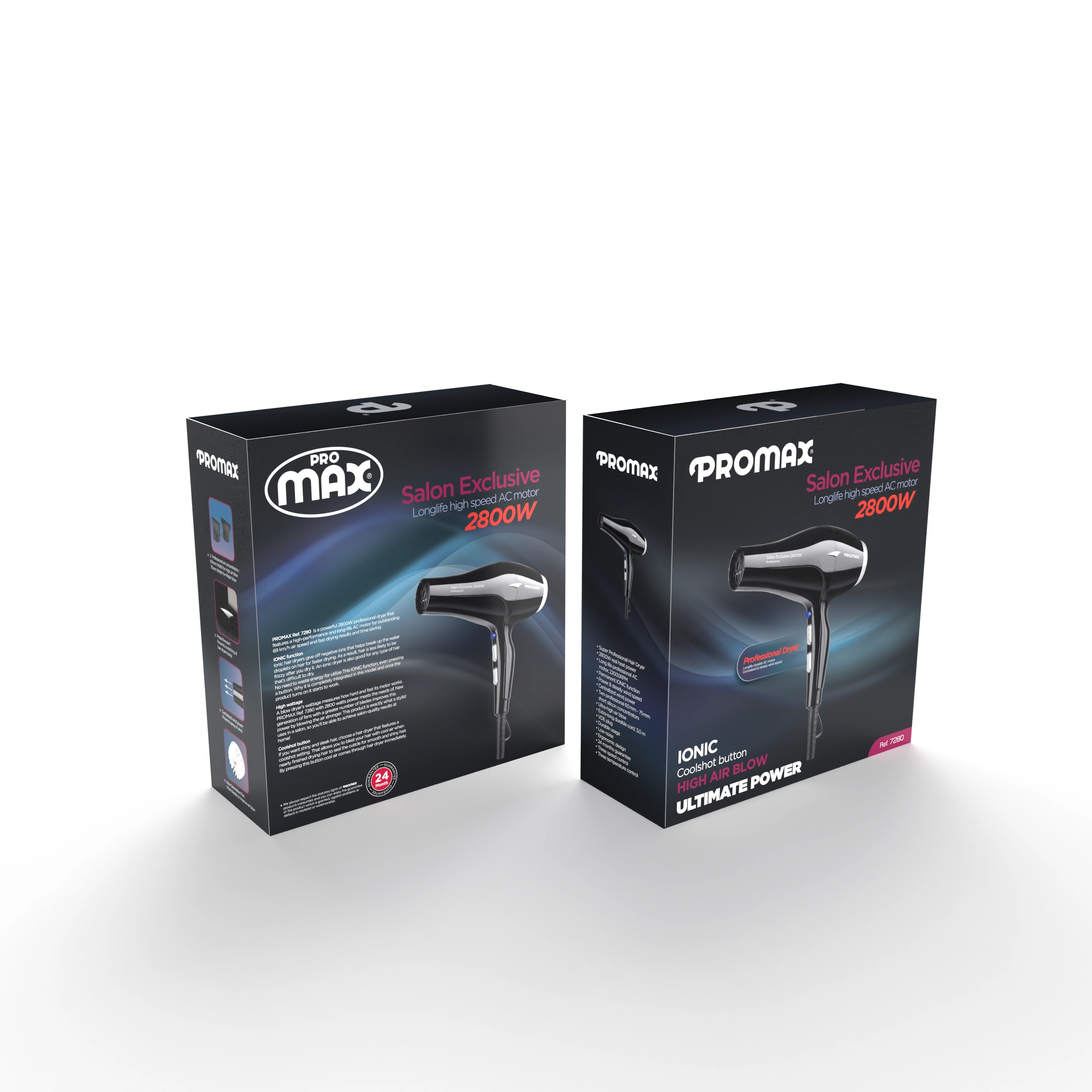 سشوار پرومکس مدل 7280 قوی ترین و جدید ترین سشوار پرومکس است که 2800 وات قدرت حرارت دارد. این سشوار با موتور AC با حرارتی فوق العاده بالاتر از سایر سشوارهای برند پرومکس اولین سشوار 2800 وات این برند محسوب می شود. این میزان از حرارت می تواند موهایی را با بافت ضخیم براحتی خشک و نیز کار براشینگ آن را در کمترین زمان ممکنه انجام دهد. البته وجود دکمه تنظیم حرارت در سه حالت این امکان را می دهد تا بتوان دما مناسب را برای انواع مختلف مو انتخاب کرد. همچنین این دستگاه حالت تنظیم باد دارد که برای کارهای مختلف مانند خشک کردن، براشینگ و کراتین کردن و بنا نیاز می توان از آن ها استفاده نمود.